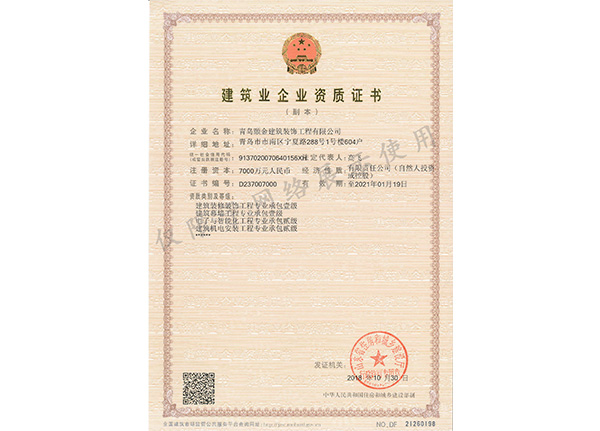建筑裝修裝飾工程專(zhuān)業(yè)承包壹級(jí) 電子與智能化工程專(zhuān)業(yè)承包貳級(jí)